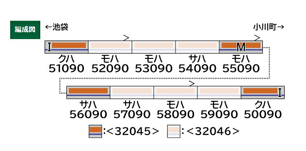 - グリーンマックス32045東武50090型(TJライナー/川越特急・車番選択式)基本4両編成セット(動力付き)24,200円東武50000型は、東武通勤車として初のアルミ車体を採用し、バリアフリー・省エネルギー・メンテナンスフリー化を目指した次世代車両として、2004(平成16)年に登場しました。 伊勢崎(東武スカイツリーライン)—地下鉄半蔵門線乗入車として50050型が2006(平成18)年に登場し、翌2007(平成19)年からは東上線—地下鉄有楽町・副都心線乗入車両として50070型が登場。さらに2008(平成20)年には、東上線で運転を開始した座席定員制列車「TJライナー」用車両として50090型が登場しました。 50090型は関東では初のクロスシート・ロングシート転換方式を採用し、「TJライナー」「川越特急」「快速急行」ではクロスシートで、それ以外の列車ではロングシートで運用されます。■新ロゴマーク貼付け後、現在の姿を再現 ■室内はクロスシート状態を再現し、車両番号は付属の車両マークから選択可能